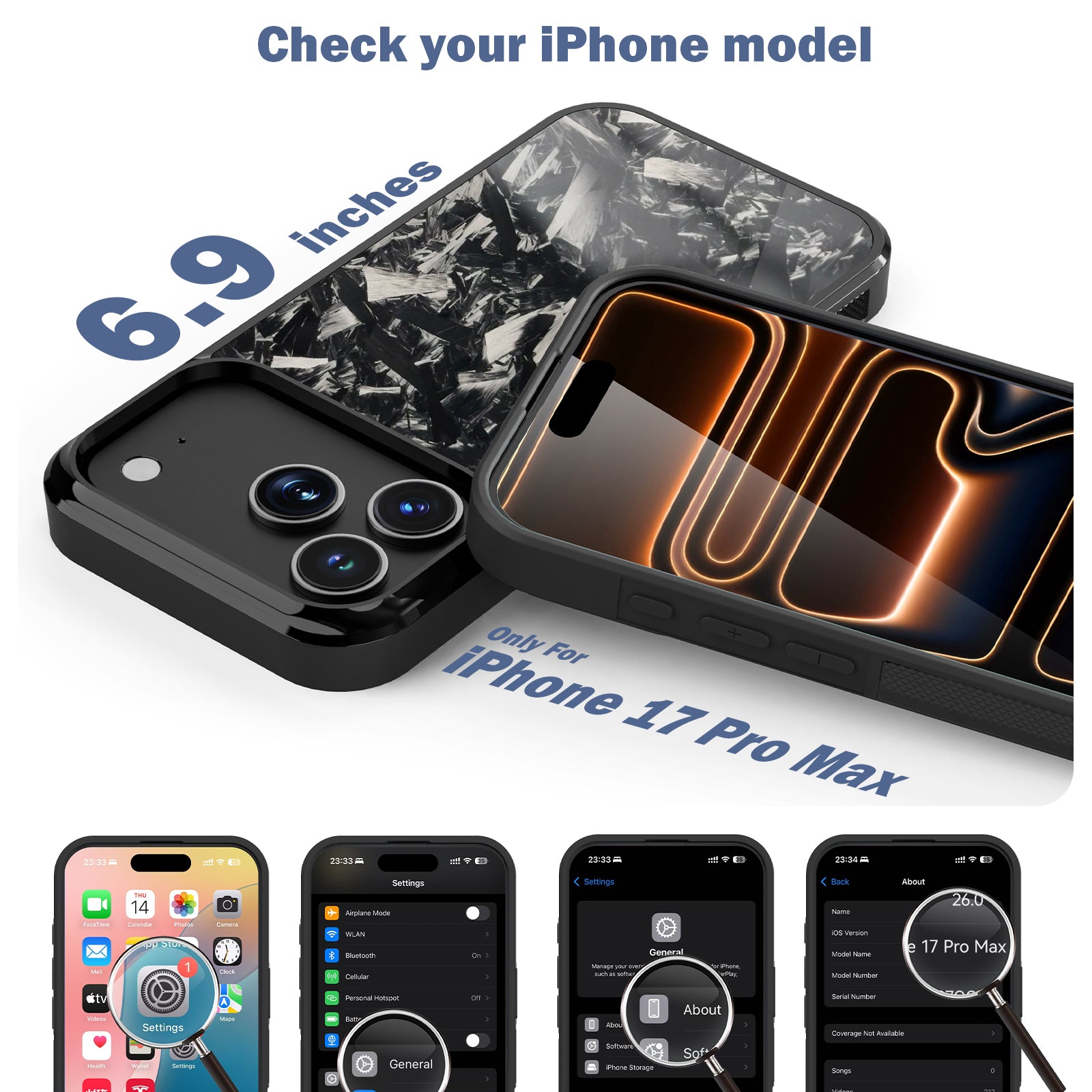 Introducing the Molzar Grip Series, the ultimate case designed to make your iPhone 17 Pro Max stand out. Each case is a one-of-a-kind masterpiece, combining the strength of genuine, forged carbon fiber with the artistic flair of hand-placed. This isn't just a phone case, it's a statement piece.