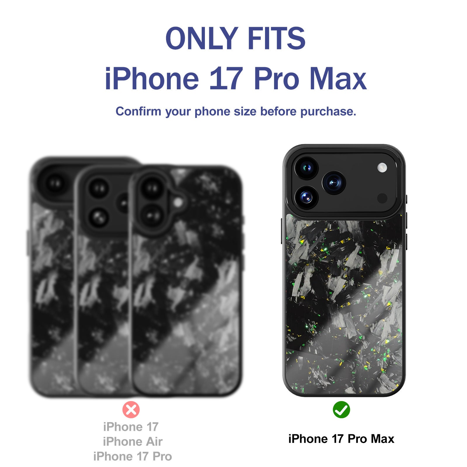 Introducing the Molzar Vibe Series, the ultimate case designed to make your iPhone 17 Pro Max stand out. Each case is a one-of-a-kind masterpiece, combining the strength of genuine forged carbon fiber with the artistic flair of hand-placed, sparkling green and gold tinfoil flakes. This isn't just a phone case, it's a statement piece.